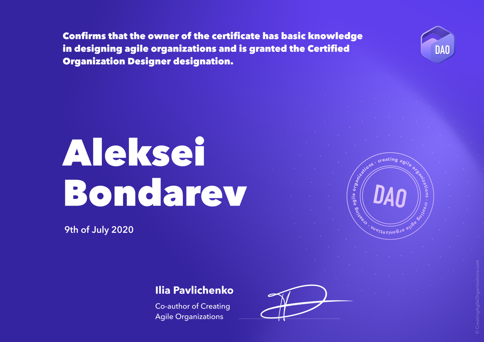 Это тренинг основан на книге Creating Agile Organizations Ильи Павличенко и Сезарио Рамоса.